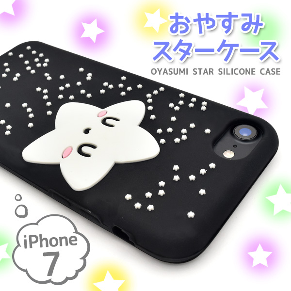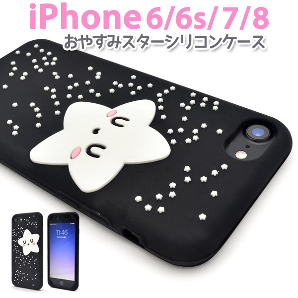 iPhone7 iPhone8 iPhoneSE(第二世代)用 おやすみスター シリコンケース キュート 可愛い 星 モノトーン 背面保護カバー SoftBank au docomo