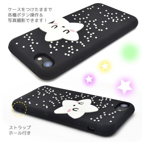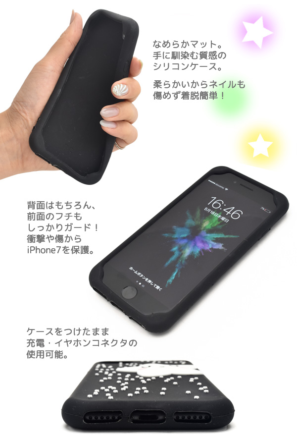 衝撃やキズなどからiPhoneを守るのはもちろん、カメラ、音量や各種ボタンなどをケースに入れたまま操作可能です。シリコン製なのでやわらかく着脱も簡単!すやすや眠るお星様に癒されます♪※iPhoneは付属しません。※ライセンス商品ではありません