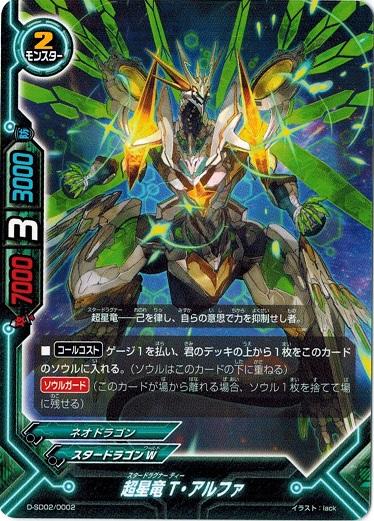 カード名:超星竜 T・アルファ 収録:クロスドラグナー 品番:D-SD02-0002 レアリティ:- ワールド:スタードラゴンワールド 種類:モンスター