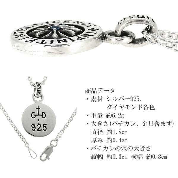 ダイヤモンド フレア コイン シルバーペンダントトップ チェーンなし ダイヤ ブルーダイヤモンド ブラックダイヤモンド クロス ユリ シルバー925