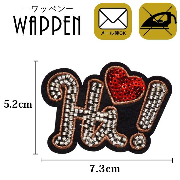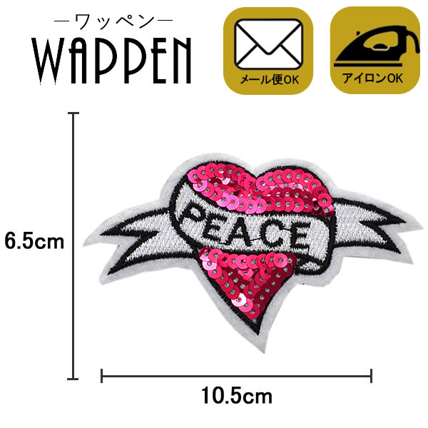 ワッペン アップリケ スパンコールワッペン アイロン接着 手芸 ハンドメイド 縦6.5cm×横10.5cm ピンク ハート PEACE母の日 プレゼント ギフト