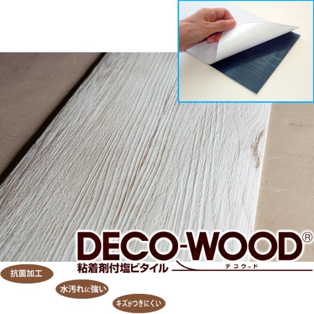 ●デコウッドは、裏紙を剥がして簡単に床・壁に貼り付けることができる塩ビタイルです。