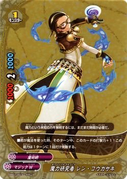 カード名:魔力研究者 レン・コウガサキ 収録:パーフェクトパック 第1弾 ゴールデンバディパック 品番:PP01/0016 レアリティ:ガチレア ワールド:マジックW 種類:モンスター
