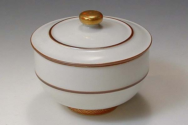 つまみと高台にのみ朱金欄手を描いた上品なお茶呑茶碗です。季節、慶弔を問わずお使い頂けます