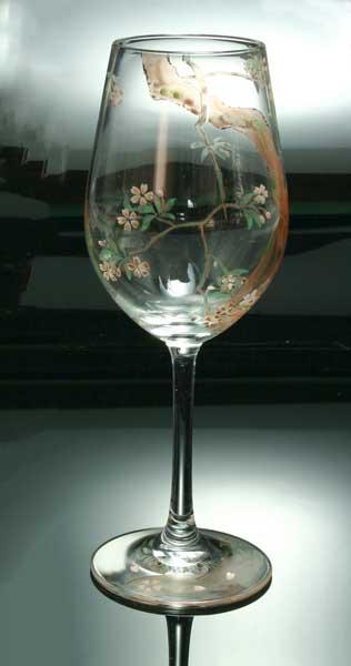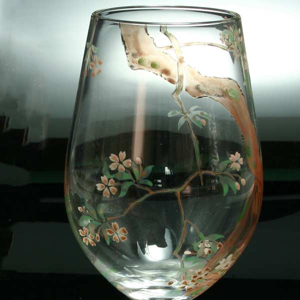 京焼き絵付け ワイングラス(小) 十二ケ月花鳥図(桜)