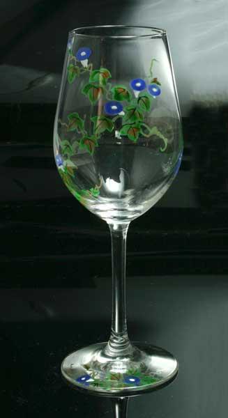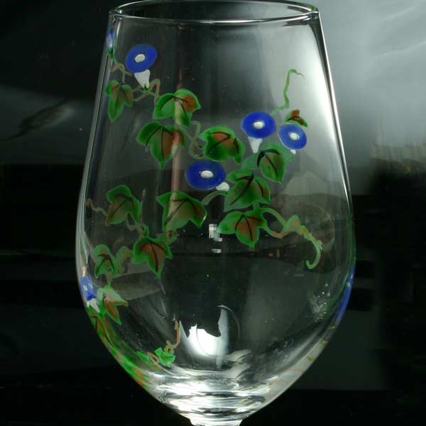 京焼き絵付け ワイングラス(小) 十二ケ月花鳥図(朝顔)