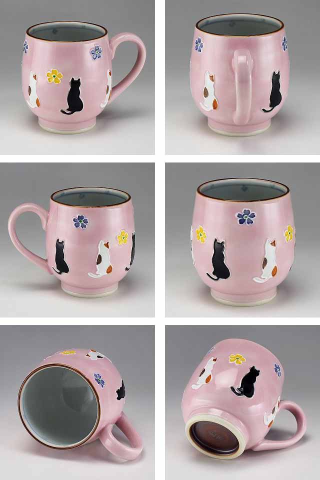 京焼 清水焼 ペアマグカップ 交趾花ねこ