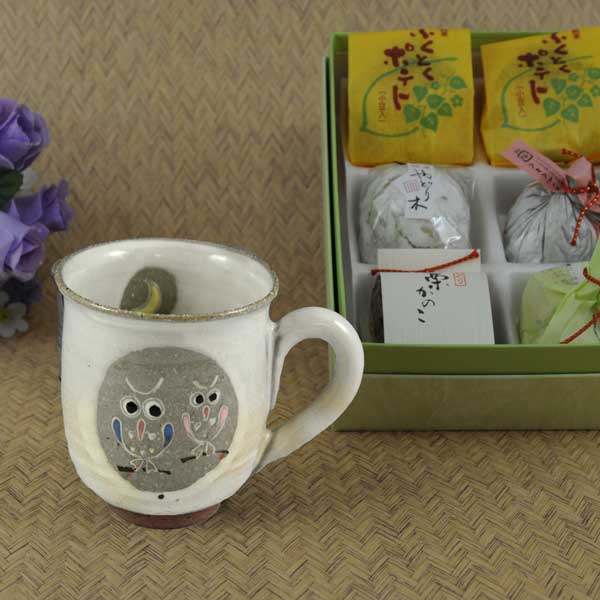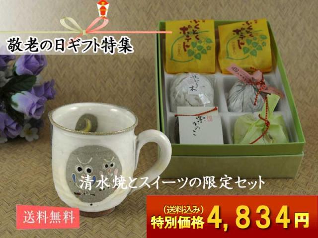 京焼 清水焼 マグカップ 敬老の日単品 白釉ふくろう スイーツセット