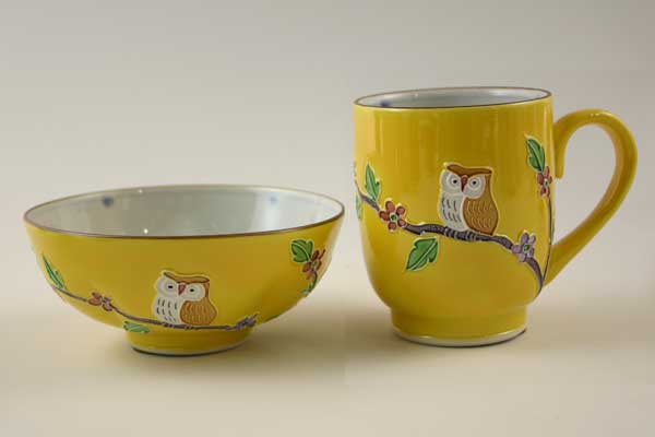 楽膳セット 黄交趾ふくろう