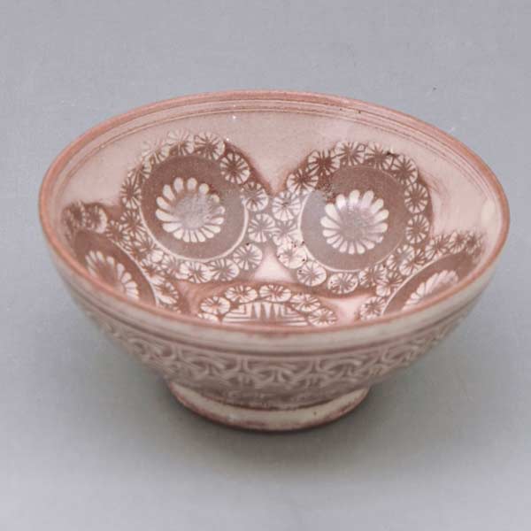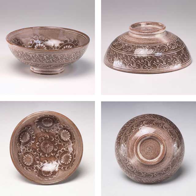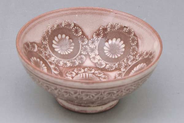 繊細な印華模様と、独特の色調が印象的な器です。土の色と化粧土の白色との対比が珠わいを生んでいます。