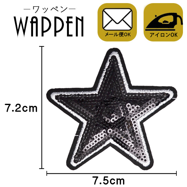 ワッペン アップリケ スパンコールワッペン アイロン接着 手芸 ハンドメイド 縦7.2cm×横7.5cm ブラック 星 スター母の日 プレゼント ギフト