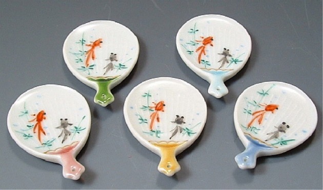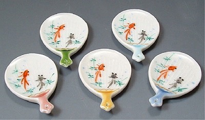 京焼 清水焼 箸置き 5個セット うちわ金魚