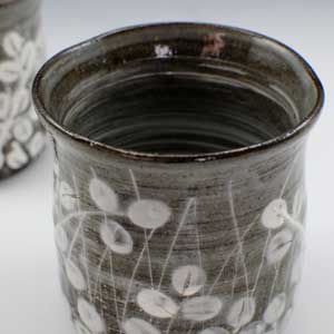 秋草の萩を白盛りにして表わした格調高い湯呑みです。