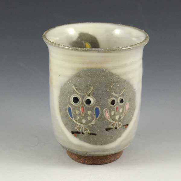 単品湯呑 白釉ふくろう