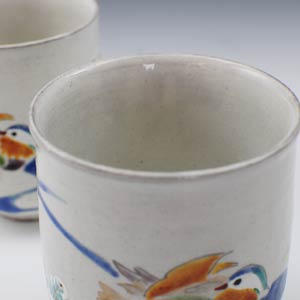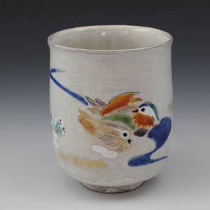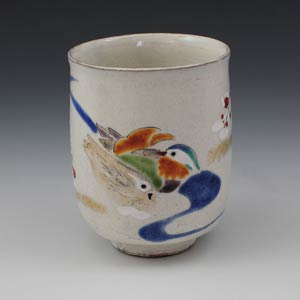 京焼 清水焼 湯呑 単品 1客 粉引おしどり(こびきおしどり)