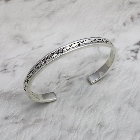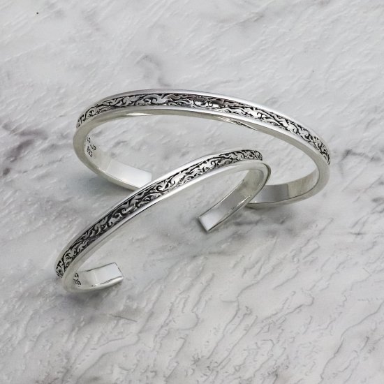 アイビー柄と鏡面のコントラストが美しいバングル。