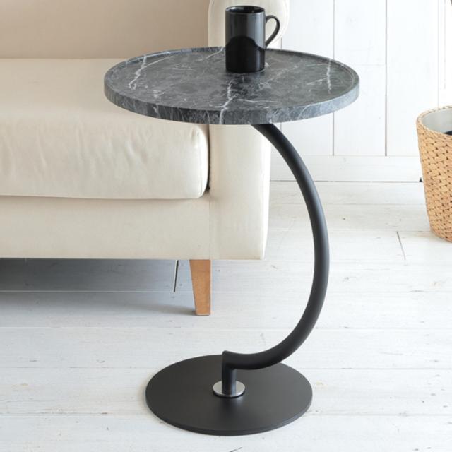 半円型の支柱とガラス天板が優雅な時間を演出するサイドテーブル