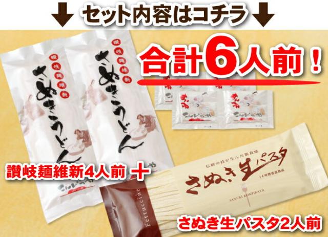【送料無料】本場さぬきうどん(讃岐うどん) お試しセット4人前つゆ付&さぬき生パスタ2人前の合計6人前 ◇技能グランプリ 受賞◇ agesugi_sgu
