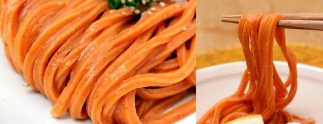 唐辛子を練り込んだ真っ赤な麺!