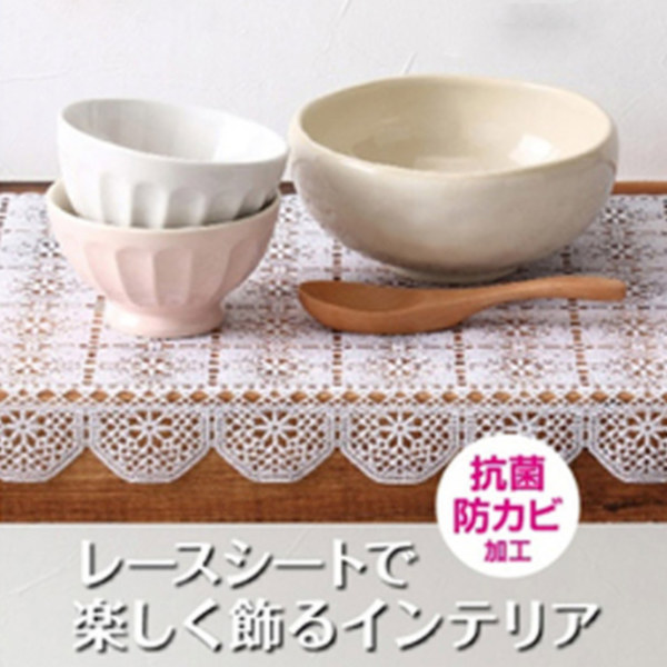 食器棚がやさしい雰囲気になるフリル付きのシートです。レースの繊細な美しさで食器棚をコーディネイトします。
