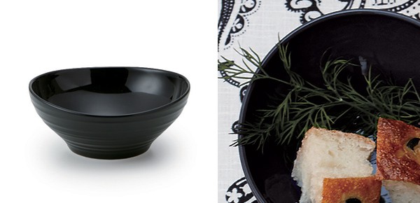 内側は光沢、外側は艶を抑えたマットな黒 料理の鮮やかさを引き立てながらテーブルをぐっと引き締め、品のあるリッチな雰囲気を演出します