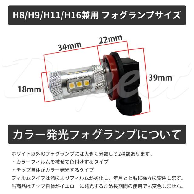 LED フォグ ランプ イエロー H8 H9 H11 H16 80W 黄金色 バルブ 汎用 ライト バルブ