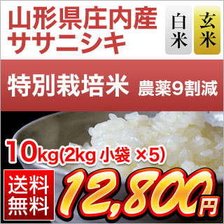 山形県庄内産 ササニシキ 10kg(2kg×5袋)【白米・玄米 選択】【特別栽培米】【送料無料】【米袋は窒素充填包装】 お米 令和7年産 2025年産