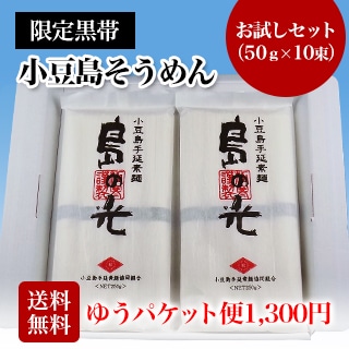 【 小豆島手延 素麺 】 小豆島 そうめん 「島の光」 高級限定品 黒帯 お試し セット 50g×10束【送料無料・ゆうパケット便】