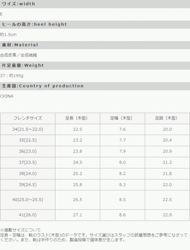 足長(木型):22.5cm/足幅(木型):7.6cm