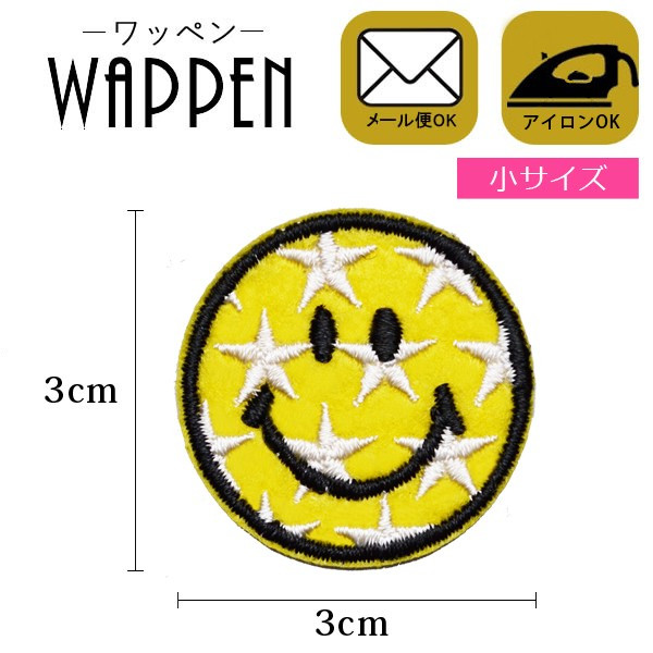 スマイル ワッペン アップリケ 刺繍ワッペン アイロン接着 手芸 手作り スマイルワッペン 縦3cm×横3cm (小)スター母の日 プレゼント ギフト