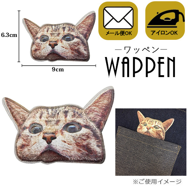 ワッペン ネコ 動物 刺繍ワッペン アイロン接着 手芸 手作り アニマルワッペン 縦4.5cm×横5.5cm ねこ 猫 アップリケ母の日 プレゼント ギフト