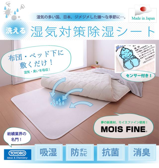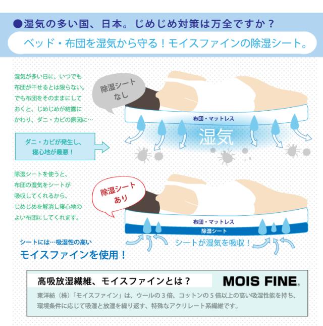 【日本製】東洋紡 TOYOBO さらっとファイン モイスファイン ウオッシャブル 除湿シート 湿気 センサー付き 除湿マット シングルサイズ 90×180cm【送料無料】