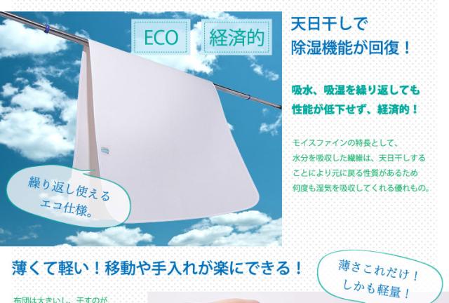 ■シリカゲル素材の製品2?3倍の水分吸収性を誇るモイスファイン素材を使用!