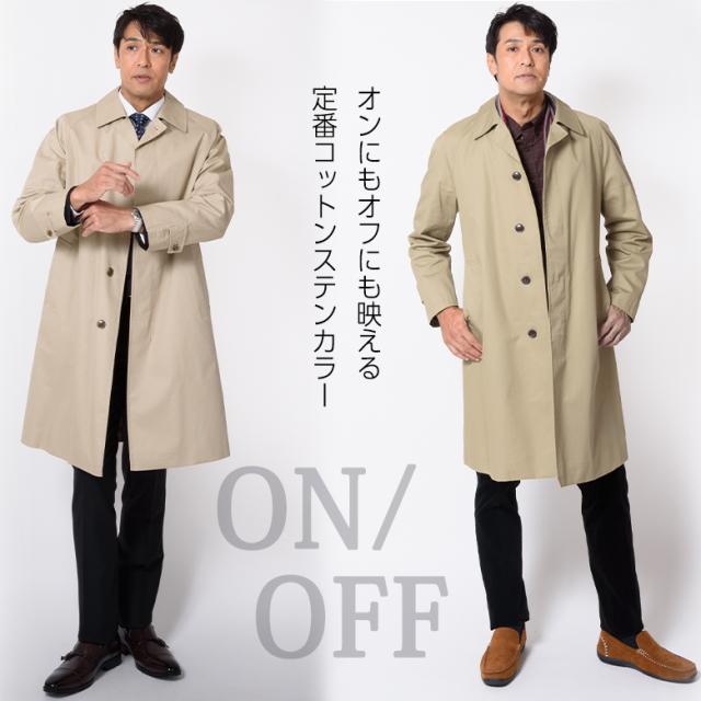 コート メンズ ビジネス 秋冬春 着脱式ライナー付き コットン ステンカラーコート ロングコート スリーシーズン ビジネスコート ハーフコート【秋冬】送料無料