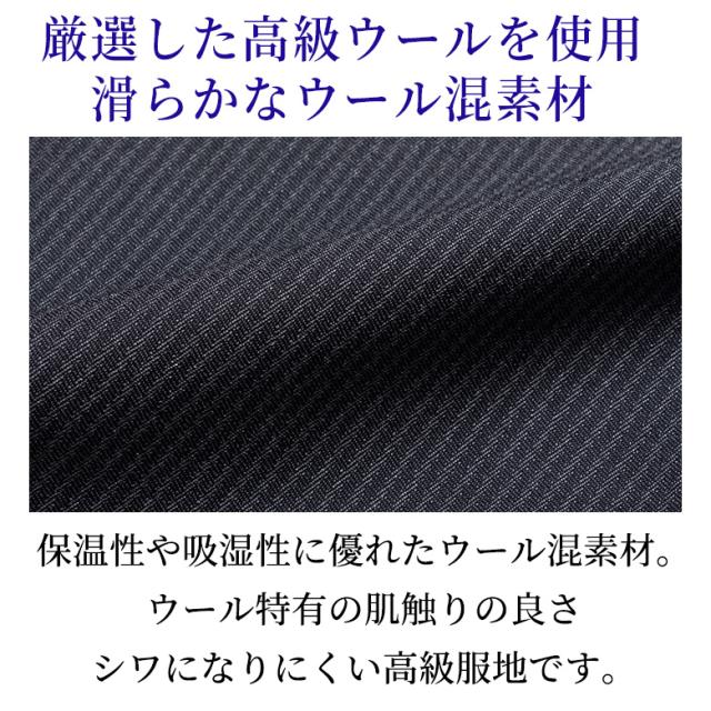 上品なデザインと滑らかで肌触りの良い高級スーツ生地を使用。