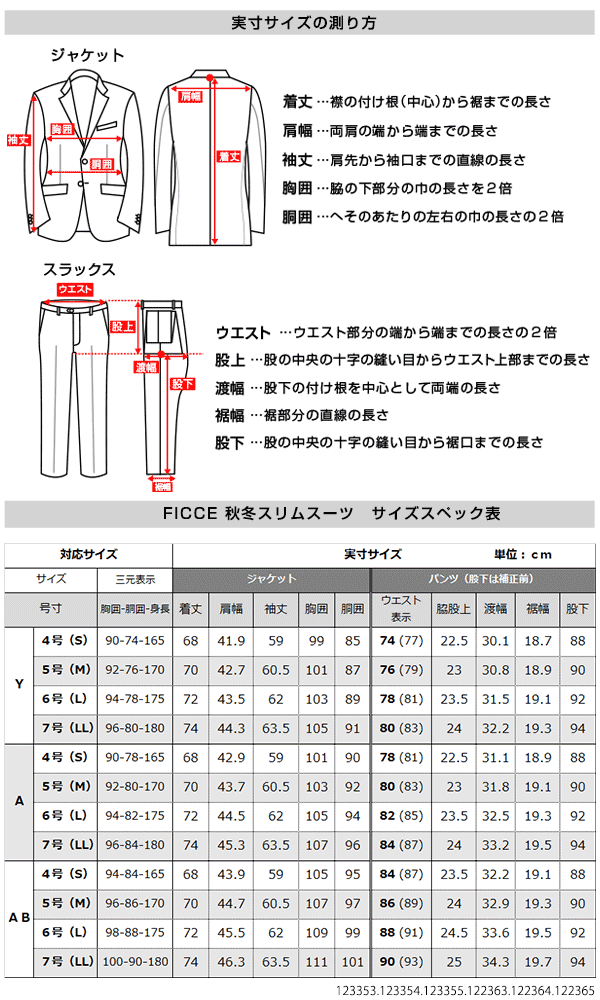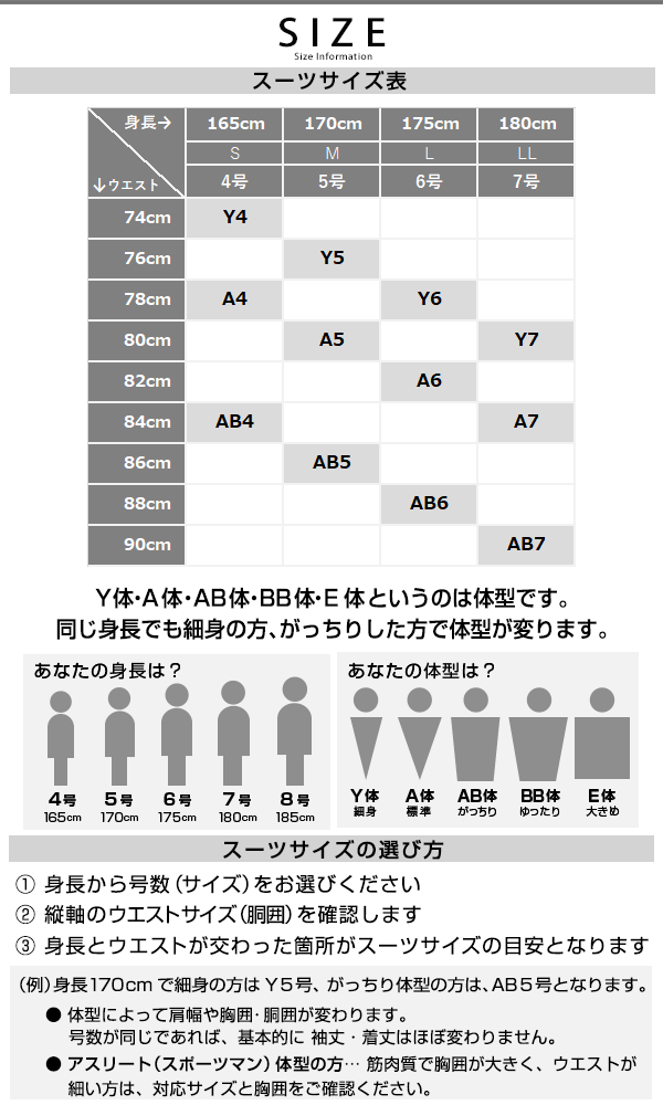 AB体4号(S) AB体5号(M) AB体6号(L) AB体7号(LL)