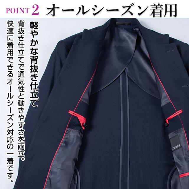 フロント4つボタン 背抜き仕様 サイドベンツ ソデ4つボタン 左右ポケット 左胸ポケット 左右胸内ポケット 脇汗パット