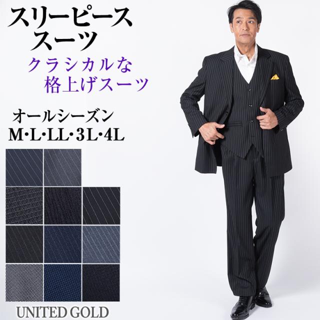 スーツ メンズ スリーピース ベスト付き オールシーズン対応 ゆったり ツータック フォーマルスーツ 結婚式 披露宴 パーティ ステージ衣装 大きいサイズ M〜4L 125801 送料無料 s13 ※お使いのパソコンモニタやスマートフォンの機種、ブラウザによって実際の商品の色とは異なって見える場合がございます。ご了承ください。UNITED GOLD ユナイテッドゴールド UNITEDGOLD