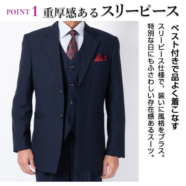 スーツ メンズ スリーピース ベスト付き オールシーズン対応 フォーマルスーツ 結婚式 披露宴 パーティ ツータック