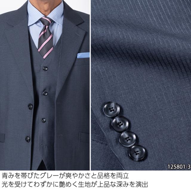 ベストはベーシックなデザインで、スリーピース本来の着こなしをお楽しみいただけます。