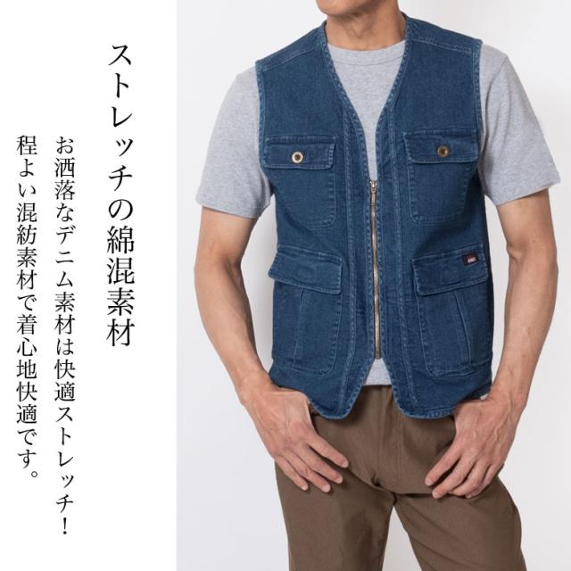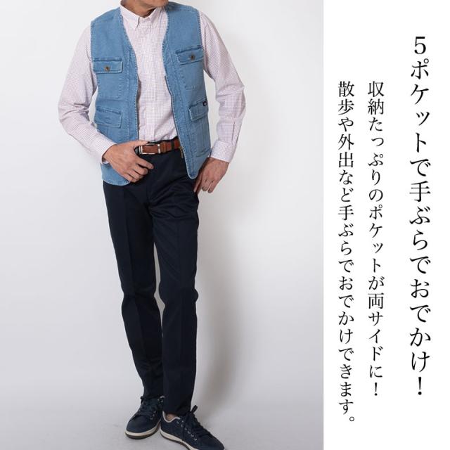 サマーベスト メンズ 春夏 カジュアルベスト ストレッチ シニア デニム 散歩 お出かけ ギフト プレゼント