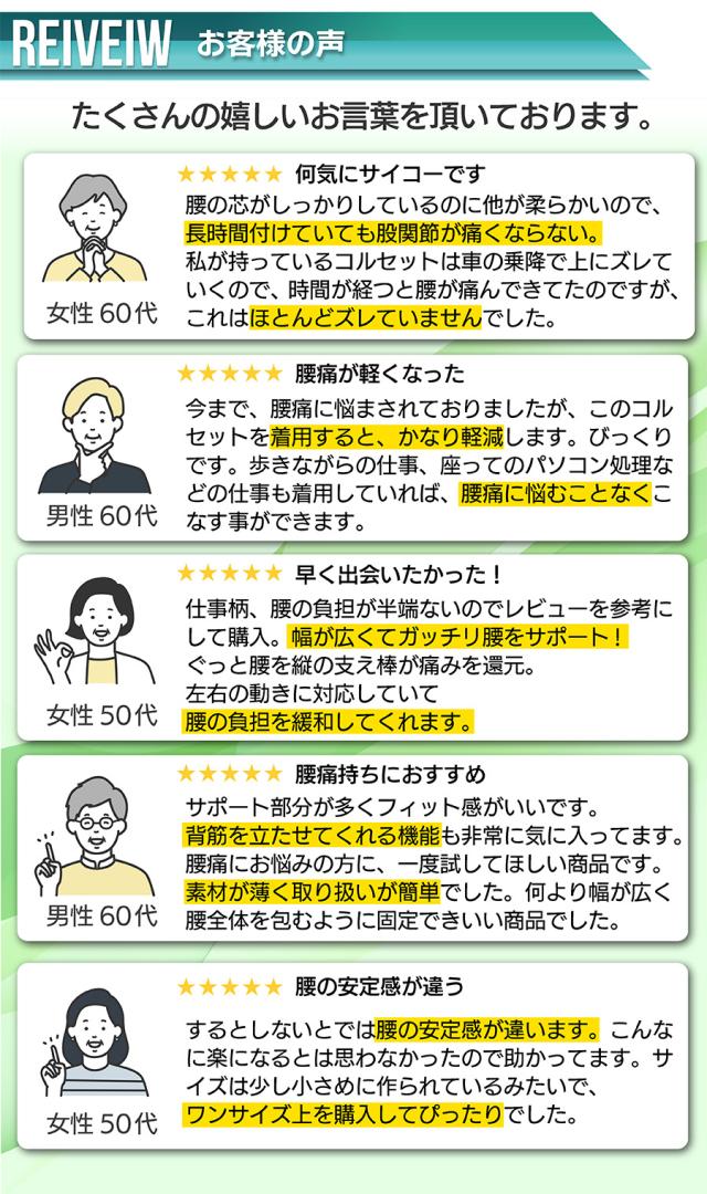 - 付けやすく、付けているだけで腰が楽です 最近腰が痛くて困っていたので助かりました