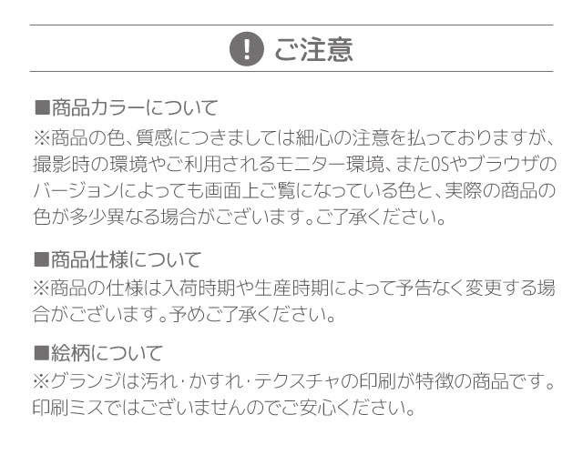 グランジデザインは、ムラのある印刷が特徴の商品です。印刷時のインク飛び・印刷ムラではございませんのでご安心ください。