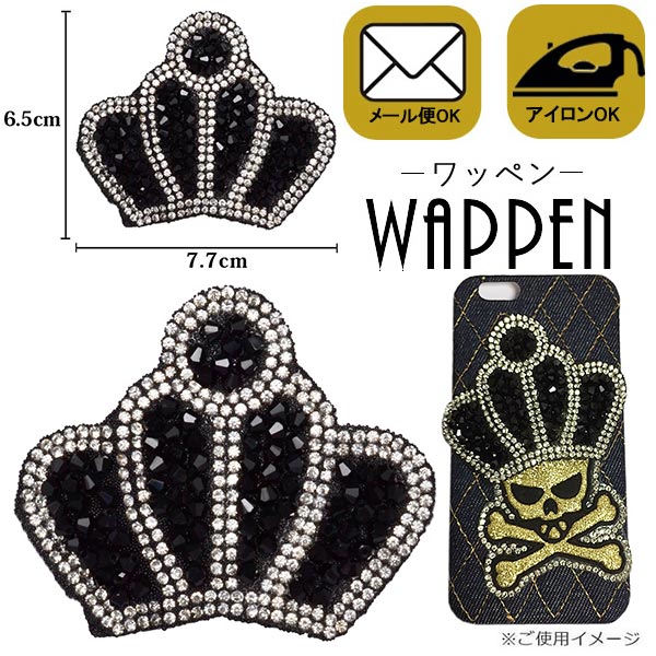 ワッペン ストーンワッペン アイロン接着 縦6.5cm×横7.7cm 王冠 クラウン ラインストーン キラキラワッペン 手芸母の日 プレゼント ギフト