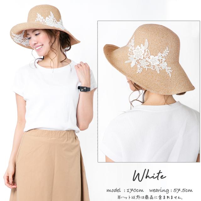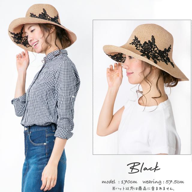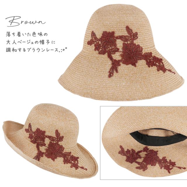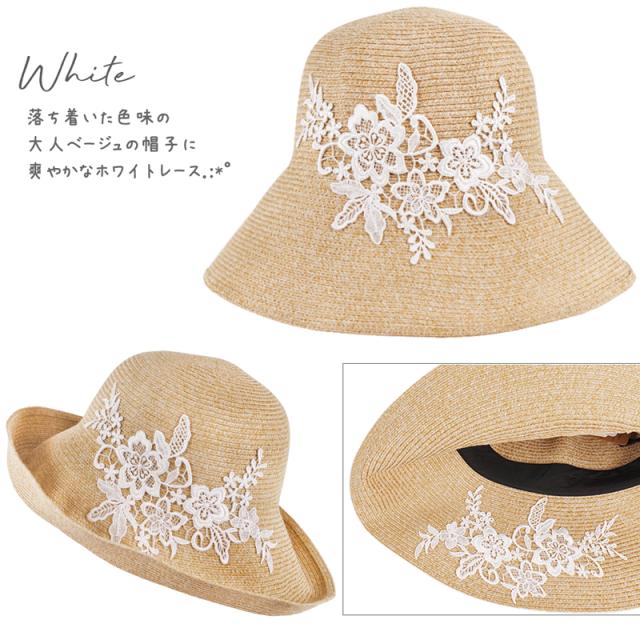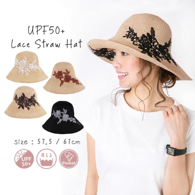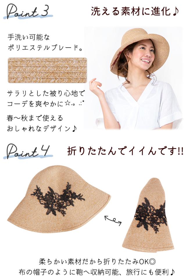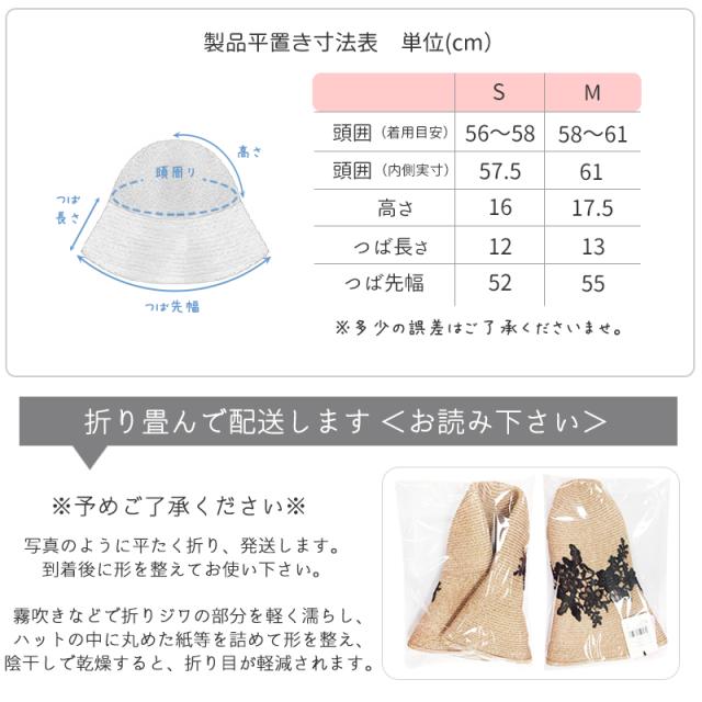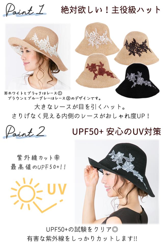 商品カテゴリ : レディース 帽子 ハット UPF50+ UVハット つば広 レース お洒落 上品 機能的 折り畳み 帽子 大きいサイズ ストローハット