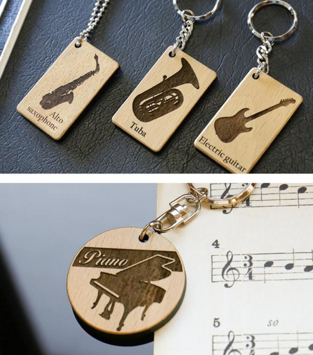 ■改良のため、予告なく仕様変更する場合があります。卒団 記念品 木製記念キーホルダー 記念品 卒業記念品 卒業 部活 引退 吹奏楽 ピアノ 卒団 名入れ プレゼント 誕生日 女の子 女性 メモリアル トランペット サックス ギター バイオリン