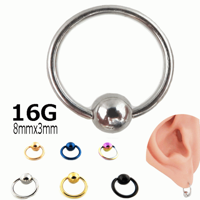 ボディピアス キャプティブビーズリング 16G 1.2mm サージカルステンレス ボディーピアス 内径 8mm ボール径 3mm 片耳一個売り
