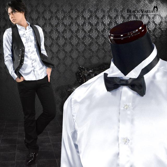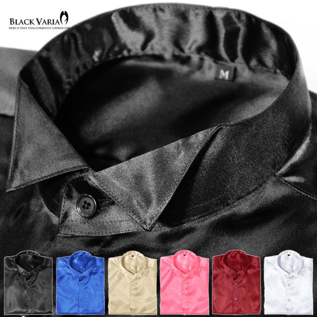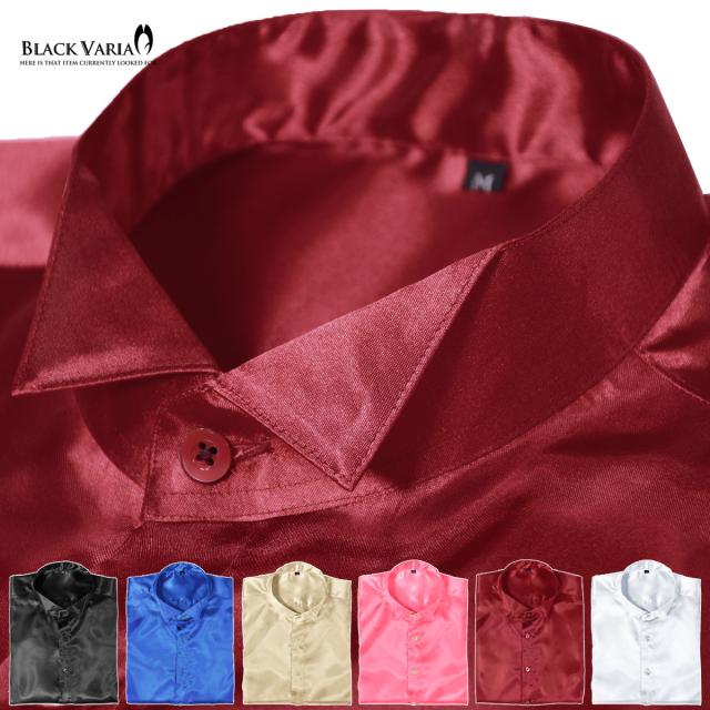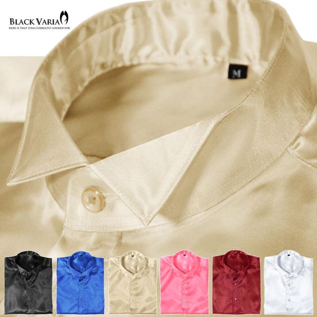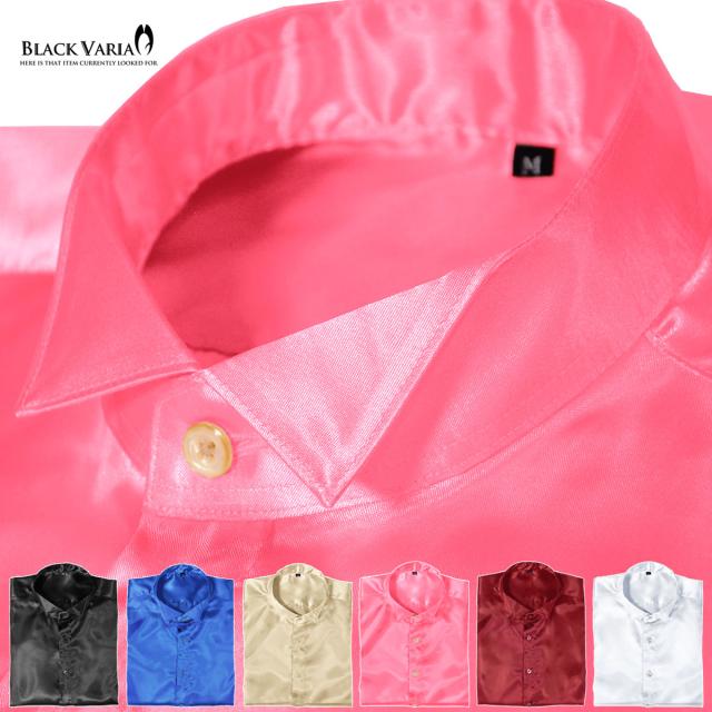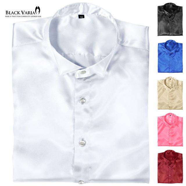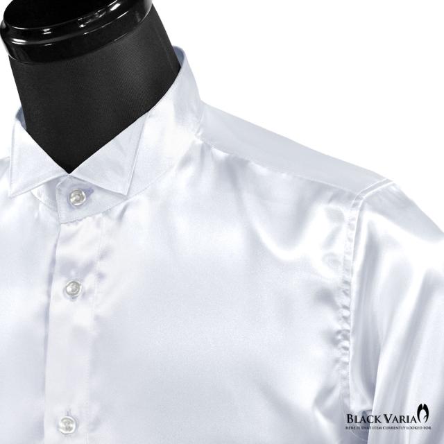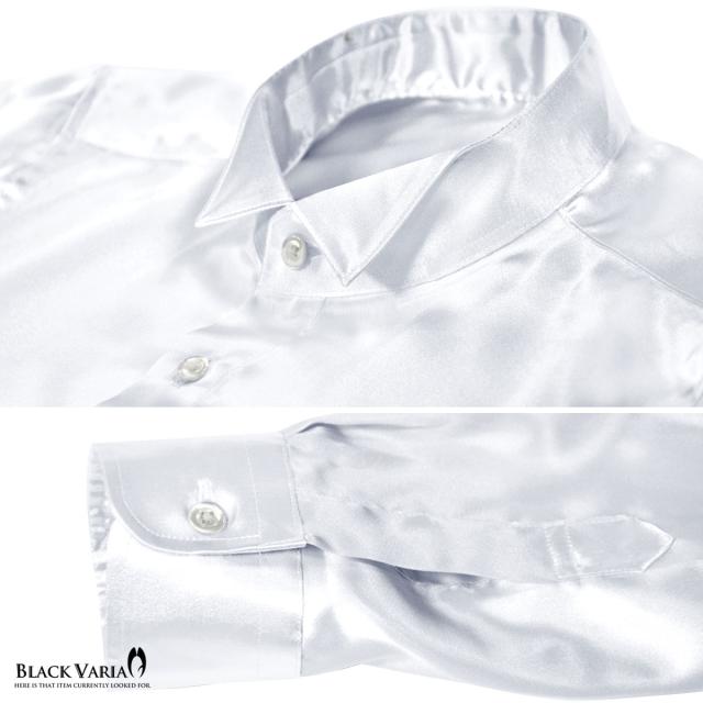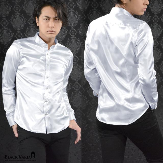 サテンシャツ ドレスシャツ 長袖 ウィングカラー 無地 光沢 衣装 ユニフォーム 発表会 メンズ 日本製(シルバー銀グレー) 161208