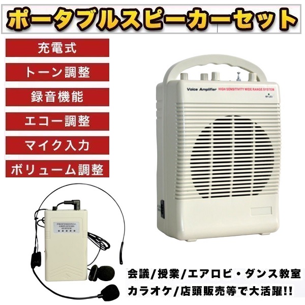 ポータブルスピーカーセット アンプ内蔵 ヘッドセット ピンマイクつき スピーカー ピンマイク 会議/授業/エアロビ・ダンス教