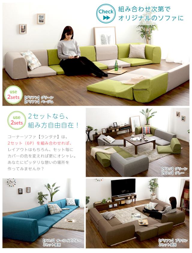 カバーリングコーナーローソファセット【Lantana-ランタナ-】(カバーリング コーナー ロー 2セット)